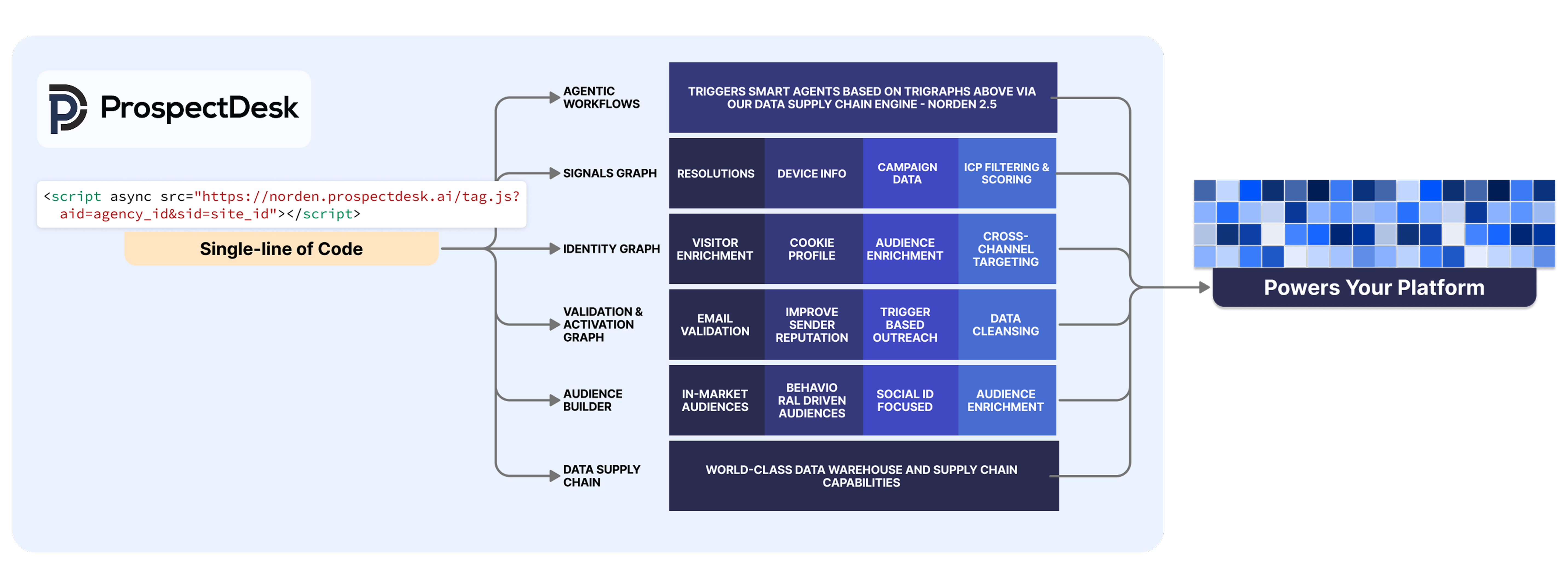 Build faster, smarter agents with better data. Prospect Desk delivers resolution, intent, and context so your agents act on known prospects.